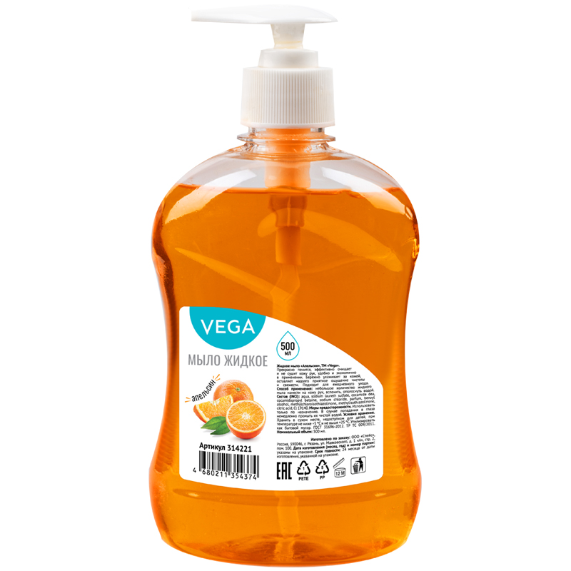 Мыло жидкое Vega "Апельсин", с дозатором, 500мл