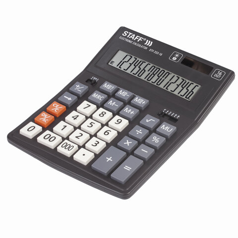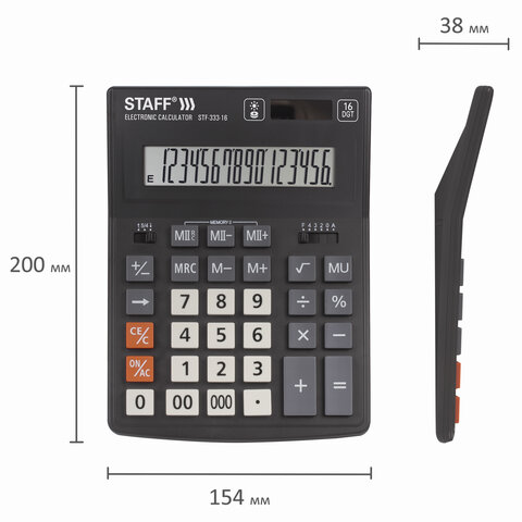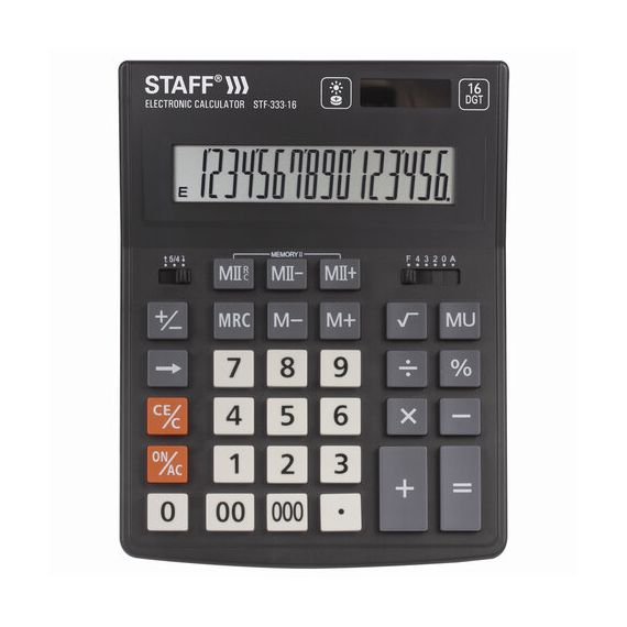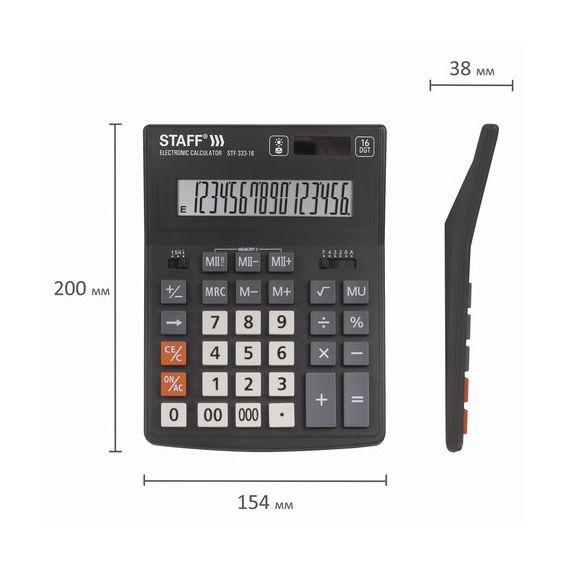 Калькулятор настольный STAFF PLUS STF-333 (200x154 мм), 16 разрядов, двойное питание