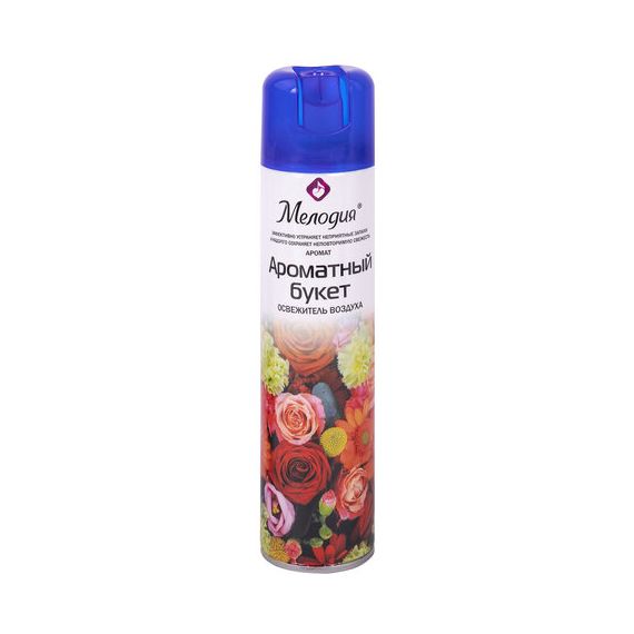 Освежитель воздуха МЕЛОДИЯ "Ароматный букет" быстро и эффективно устраняет неприятные запахи и освежает воздух в жилых и бытовых помещениях. Имеет приятный стойкий аромат, который надолго наполнит помещение свежестью.