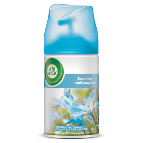 Наслаждайтесь изысканным ароматом весеннего пробуждения вместе со сменным баллоном для аэрозольного освежителя воздуха AIRWICK Freshmatic "Весеннее пробуждение"!