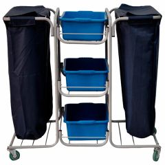 Модель оснащена 3 полками и 2 мешками из высокопрочного нейлона на неоткидных кронштейнах, а также пластиковыми лотками для хранения необходимых принадлежностей. База тележки изготовленная из качественного металла толщиной 1,5 мм и покрыта антивандальной краской, устойчивой к химическим...