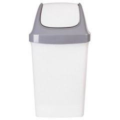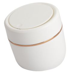 Изготовлена из высококачественного пластика белого цвета. Оснащена крышкой с механизмом вращения. Легкость и компактность корзины позволяют перемещать ее с одного места на другое. Небольшая корзина легко помещается на рабочем столом. Имеет размеры 15,5х13,5 см и объем 2,8 л.