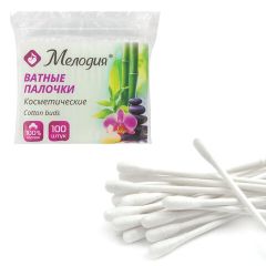 Ватные палочки МЕЛОДИЯ предназначены для ежедневных гигиенических и косметических процедур. Подходят для нанесения и корректировки макияжа. Имеют плотную намотку, что не позволяет отслаиваться волокнам при использовании. Производятся из 100% хлопка. Двусторонние ватные палочки длиной 75 мм имеют специальную форму с ограничителем. Выполнены в белом цвете. Упругая пластиковая палочка не гнется при использовании. Удобный полиэтиленовый пакет для хранения содержит 100 штук.