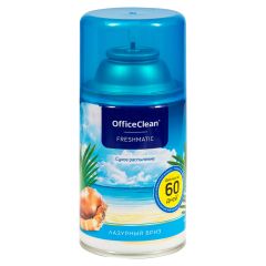 Картридж аэрозольный OfficeClean подходит для любых автоматических освежителей воздуха, быстро и эффективно устраняет неприятные запахи и ароматизирует помещение. Действует в течение 2-х месяцев непрерывного использования. Прекрасно ароматизирует воздух и удаляет неприятные запахи в любых помещениях. Безопасны для окружающей среды и человека. Клапан распылителя с мягким нажатием удобен в применении. Легкие и приятные ароматы OfficeClean. Формула "сухое распыление" делает ароматы более стойкими и не оставляет брызг и пятен на полу и мебели, более экономична в использовании, помогает быстро избавиться от неприятных запахов. Идеально подходит для свежести в помещении и ароматизации одежды, хранящейся в шкафах длительное время, а также диванов, впитавших запахи дыма, кухонные запахи и запах плесени.