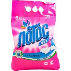 Стиральный порошок Лотос-Волга Универсал, 6 кг. Предназначен для замачивания белья, предварительной и основной стирки всех тканей, за исключением шерсти и шелка, в автоматических стиральных машинах. Подходит также для ручной стирки белья .Превосходно устраняет белковые загрязнения, а так же пятна от продуктов питания и напитков. Содержит смягчитель воды ,повышающий эффективность стирки и препятствующий образованию накипи на нагревательных элементах стиральной машины. Дозировка в зависимости от загрязненности белья указана на упаковке.