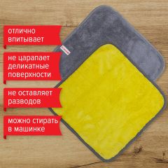 Универсальная двусторонняя салфетка LAIMA из микрофибры предназначена для ухода за различными видами поверхностей. Может использоваться как в сухом, так и во влажном виде. Идеальна для дома, офиса и автомобиля. Отлично впитывает влагу, масло, грязь. Не оставляет разводов и ворса. Не царапает деликатные поверхности, такие как экраны и ЖК-мониторы, стекло, полированную мебель. Повышенная плотность 400 г/м2 обеспечивает высокую износостойкость и экономичный расход. Размер - 35х35 см. Сохраняет свои свойства даже при многократном применении. Необходимые аксессуары в салон и багажник для авто, аксессуары для автомобиля, для мотоцикла, для дома - безворсовые салфетки микрофибра являются универсальным и эффективным средством для влажной и сухой уборки автомобиля снаружи и в салоне. Дома они подойдут как салфетки для монитора, и как салфетки для стекла. Тряпка для автомобиля двухсторонняя выполнена из микрофибры. Благодаря высокой плотности 400 г/м2 микрофибра для авто впитывает влаги до 400% от собственного веса, что исключает частое выжимание. При сушке или мытье тряпка для стекол не оставляет на поверхности ворсинок и разводов, эффективно очищает от пятен и других загрязнений, отлично притягивает пыль благодаря антистатическим свойствам. Полотенце из микрофибры не повреждает лакокрасочное покрытие автомобиля, зеркала и стекла, не образуя сколов и царапин. Размер салфетки из микрофибры является оптимальным для эксплуатации, без лишних загибов во время использования и составляет 35X35 см. Стирать автополотенце рекомендуется вручную или в стиральной машине при температуре не выше 30 градусов.