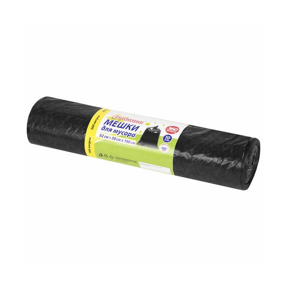Мешки для мусора 360 л черные, в рулоне 10 шт., ПВД 30 мкм, 120x160 см, ЛЮБАША эконом