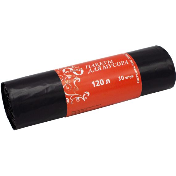 Мешки мусорные 120л (35) ПВД В рулонах (по 10 шт) Оптимум (х1/40) [упаковка]