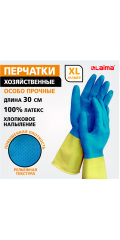 Перчатки МНОГОРАЗОВЫЕ латексные LAIMA "БИКОЛОР", сине-желтые, ОСОБО ПРОЧНЫЕ, хлопковое напыление, M