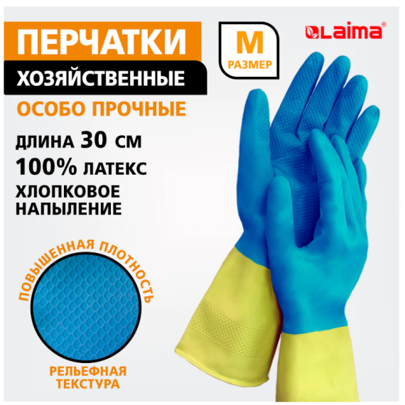 Универсальные особо прочные латексные перчатки LAIMA защищают руки от воздействия грязи, влаги, моющих и чистящих средств при любых бытовых и хозяйственных работах: мытье посуды, стирке белья, уборке, садоводческой работе и т.д.