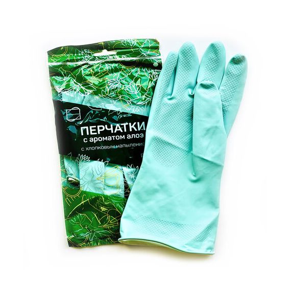Перчатки МНОГОРАЗОВЫЕ латексные с ароматом АЛОЭ зеленые, хлопчатобумажное напыление, размер M (средн
