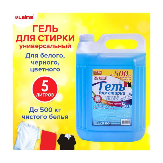 Гель LAIMA PROFESSIONAL разработан специально для стирки белья из хлопчатобумажных, льняных, смешанных тканей (кроме шерсти и шелка). Эффективно очищает, но при этом полностью вымывается в процессе полоскания, не остаётся на вещах.