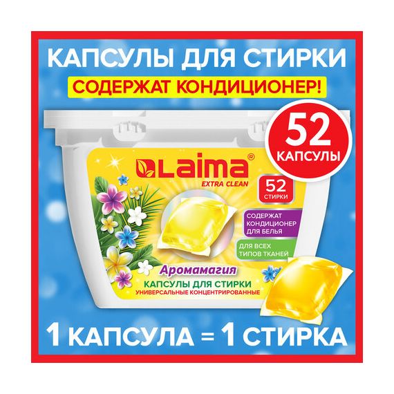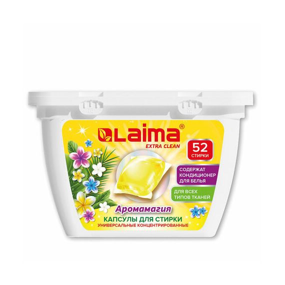 Капсулы для стирки белья концентрат 3 в 1 с кондиционером АРОМАМАГИЯ, 52 шт., LAIMA