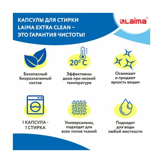Капсулы для стирки LAIMA – это новое высокоэффективное концентрированное средство для стирки в водорастворимых капсулах.