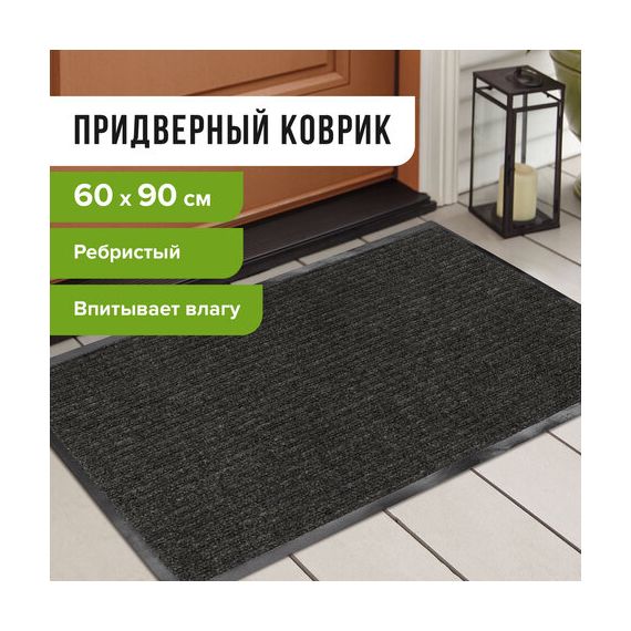 Нескользящая основа не дает влаге проникнуть на пол, предотвращает скольжение и возможные травмы при падении. Ворсовое покрытие с ребристой текстурой удерживает влагу и грязь. Размер - 60х90 см. Толщина - 7 мм. Ворс изготовлен из 100% полиэстера. Коврик выполнен в черном цвете