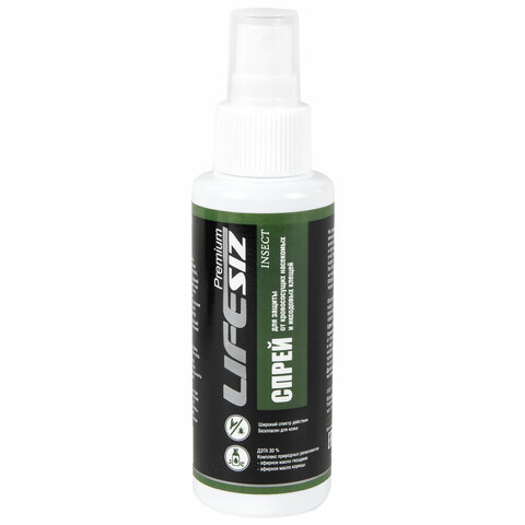 Спрей LIFESIZ предназначен для индивидуальной защиты от биологических вредных факторов (от укусов кровососущих и жалящих насекомых) при наружных работах в период активности кровососущих насекомых и клещей.