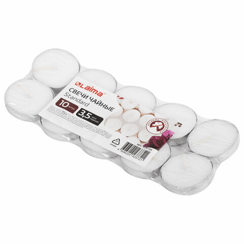 Свечи чайные Standard, до 3,5 часов горения, вес 8,5 г, КОМПЛЕКТ 10 шт., в гильзе, LAIMA