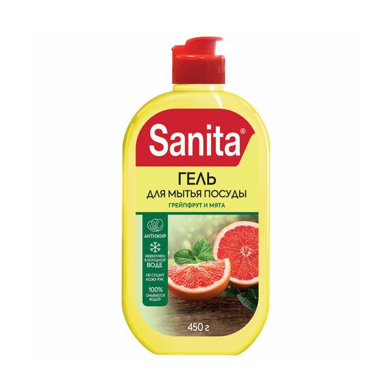 Гель для мытья посуды SANITA "Грейпфрут и мята" – это эффективное средство, которое легко справится с засохшими загрязнениями и жиром. Действует даже в холодной воде.