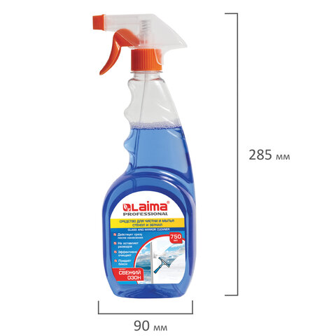 Средство для мытья стекол и зеркал 750 мл, LAIMA PROFESSIONAL, свежий озон, распылитель