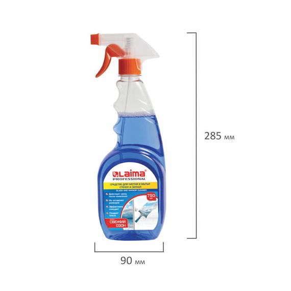 Средство для мытья стекол и зеркал LAIMA PROFESSIONAL эффективно для мытья оконных стекол, витрин, зеркал, автомобильных стекол, кафеля, хрусталя, фарфора, фаянса, экранов телевизоров и мониторов. Удаляет даже застаревшую грязь, пыль и жир.