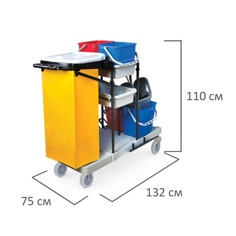 Тележка уборочная BRABIX, ведра 2х20 л, 2х11 л, механический отжим, держатель для мешка, мешок, 2 поддона, 601501