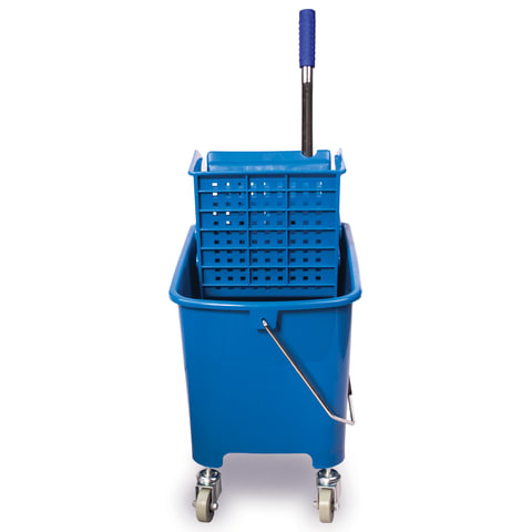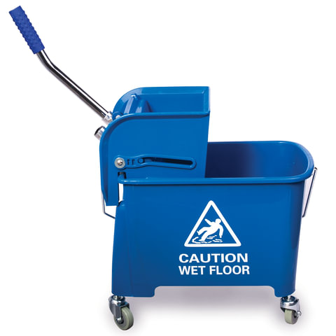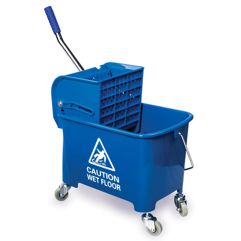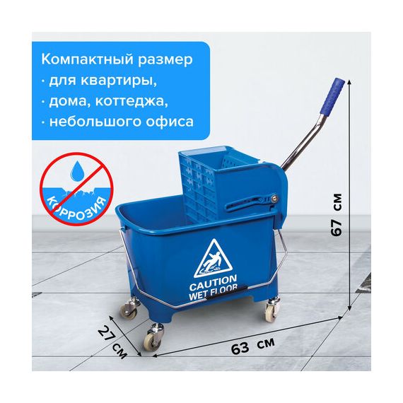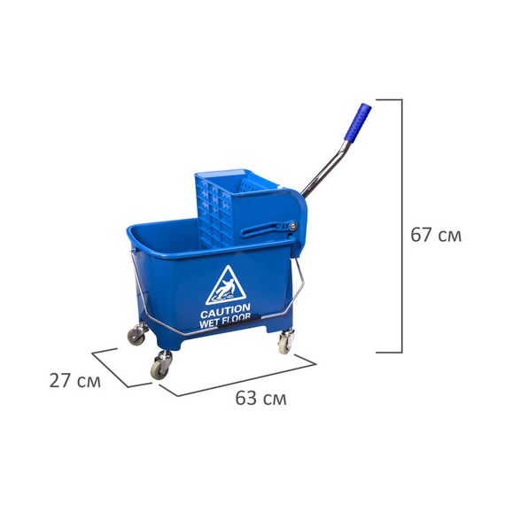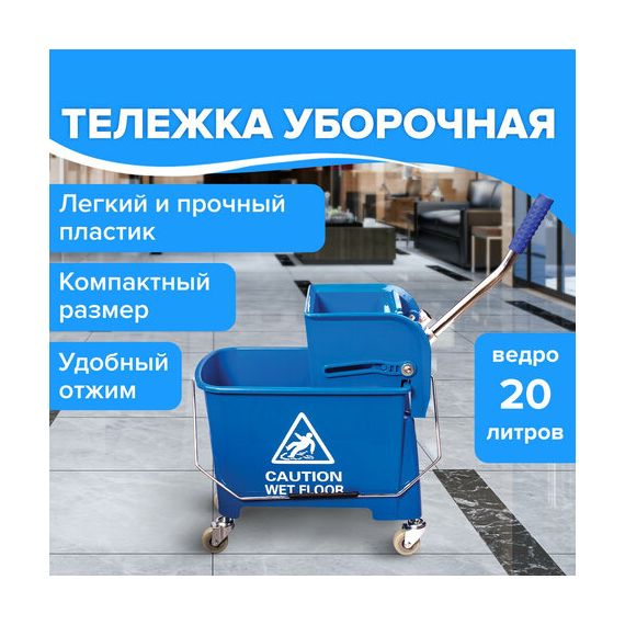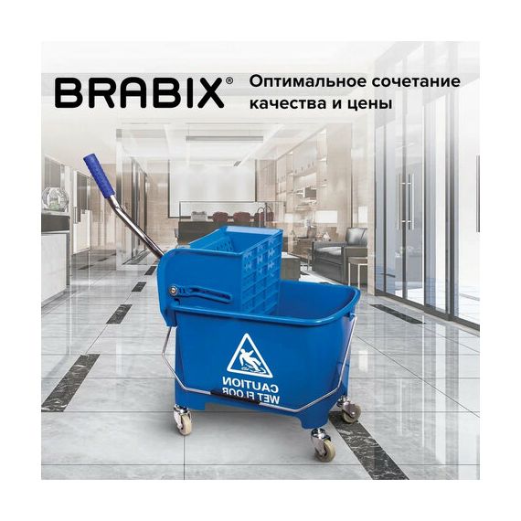 Тележка уборочная BRABIX, ведро 20 л, механический отжим, универсальная для ОФИСА/ДОМА, синяя, 601497