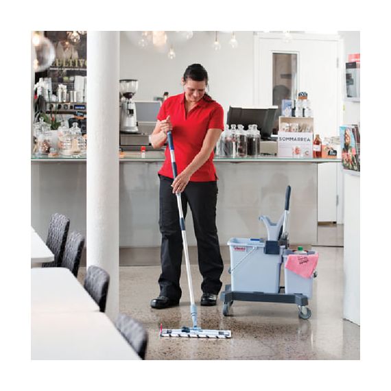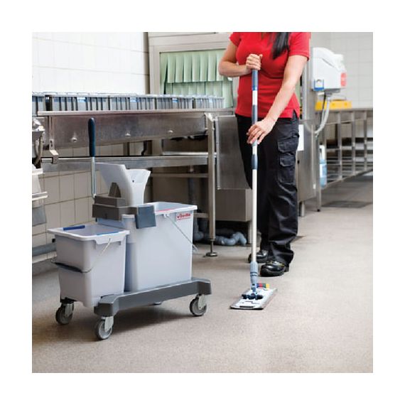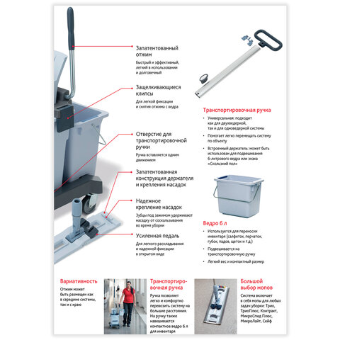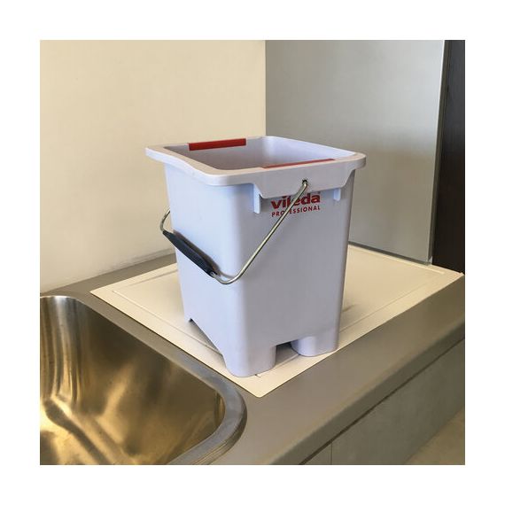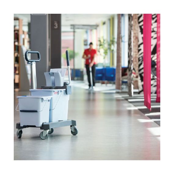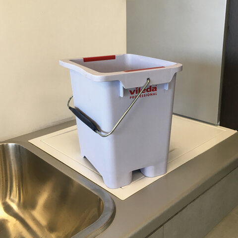 Ведро на 25 л было специально спроектировано для возможности установки отжима в середине тележки или с краю. Уникальные выемки с обеих сторон защищают от проникновения воды между ведрами в любой конфигурации.