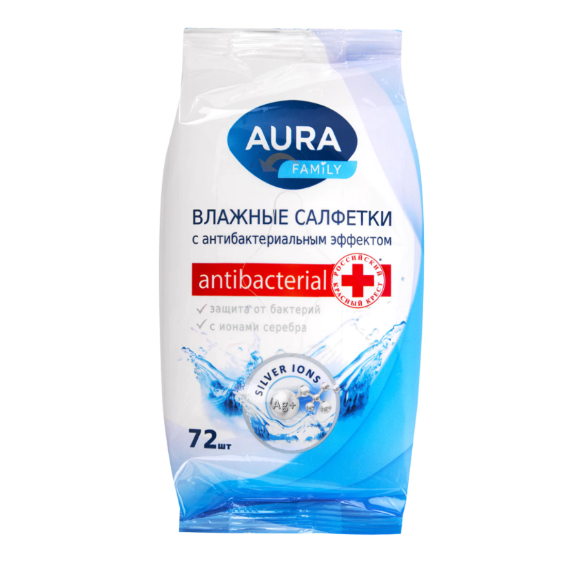 Салфетки влажные, 72 шт., AURA Family, антибактериальные, для всей семьи