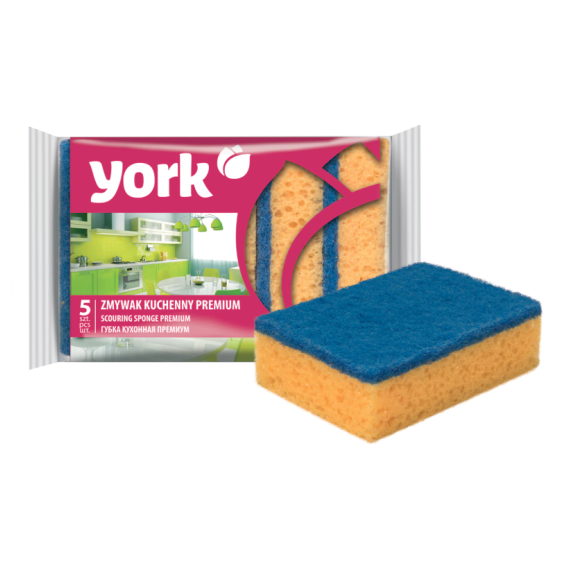 Губки для посуды 10х7,5х3 см, КОМПЛЕКТ 5 шт., MAXI, поролон с абразивным слоем, PREMIUM, YORK
