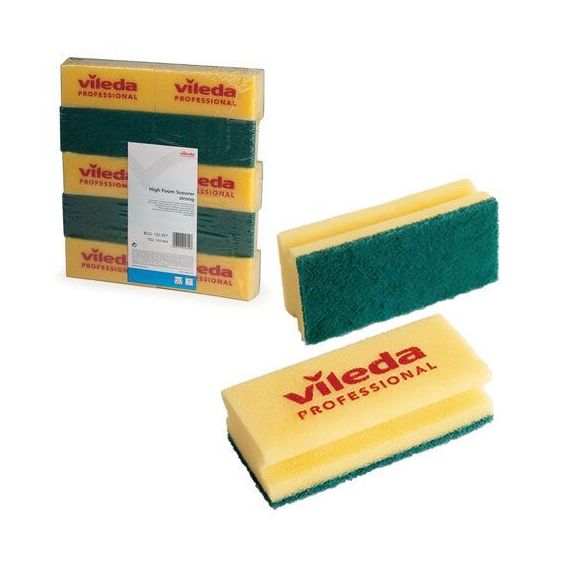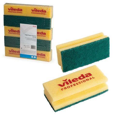 Зеленый абразив губки Vileda Professional имеет среднюю жесткость, а значит, может быть использован для удаления обычных и сильных загрязнений. Материал пенки приятен на ощупь и задерживает в себе моющее средство, что позволяет более эффективно его расходовать.