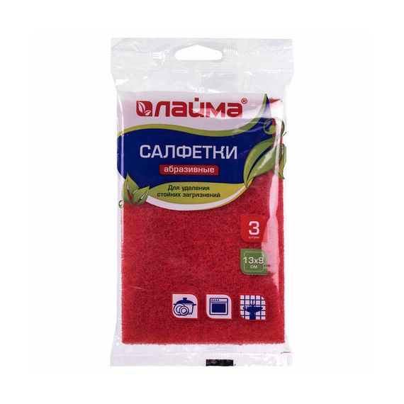Салфетки АБРАЗИВНЫЕ, 130х90х5 мм, КОМПЛЕКТ 3 шт., для удаления стойких загрязнений, LAIMА
