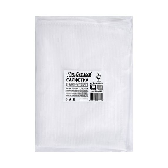 Салфетки ВАФЕЛЬНЫЕ отбеленные, 45х60 см, плотность 140(±10) г/м2, КОМПЛЕКТ 10 шт., ЛЮБАША