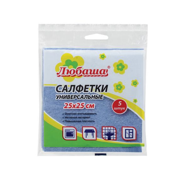 Салфетки ВИСКОЗНЫЕ универсальные MEDIUM, 25х25 см, КОМПЛЕКТ 5 шт., 80 г/м2, ЛЮБАША