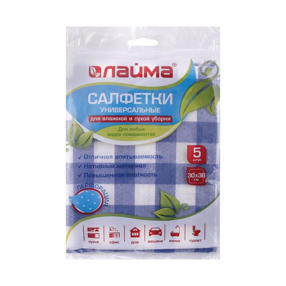 Универсальные салфетки LAIMA из вискозы предназначены для ухода за различными видами поверхностей. Могут использоваться как в сухом, так и во влажном виде.