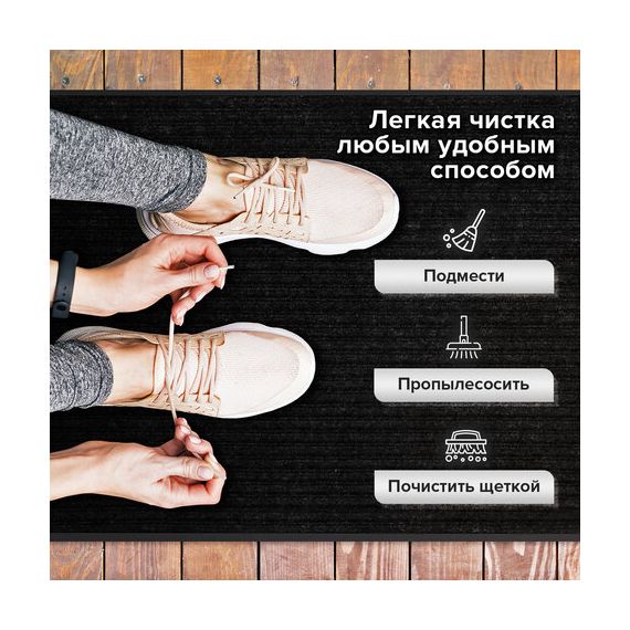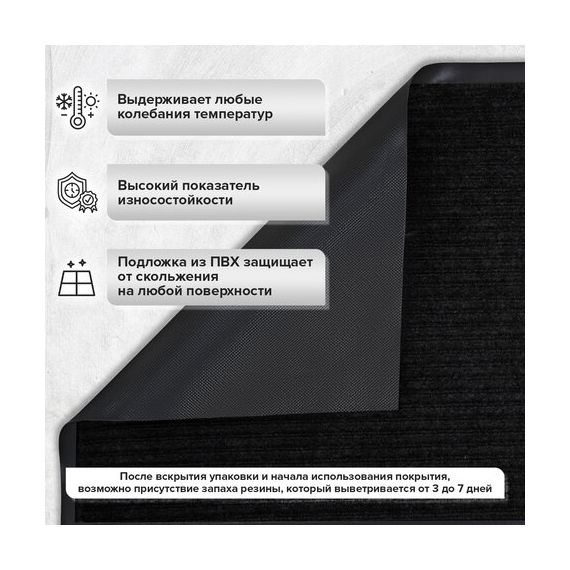 Нескользящая основа не дает влаге проникнуть на пол, предотвращает скольжение и возможные травмы при падении. Ворсовое покрытие удерживает влагу и грязь.