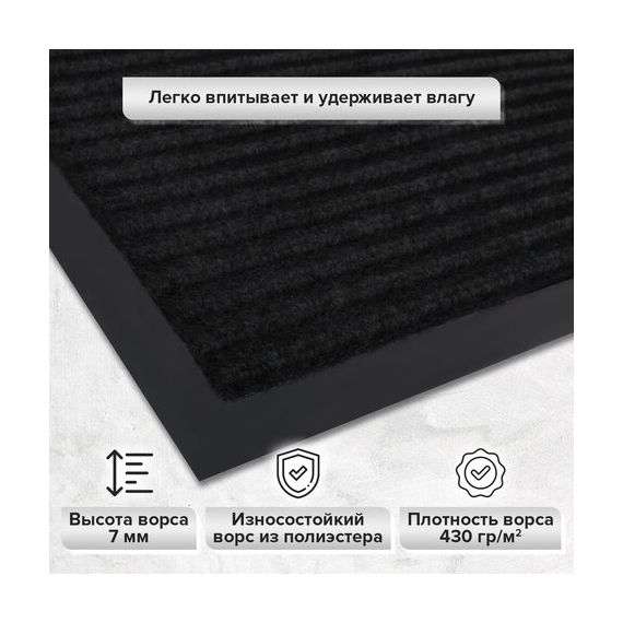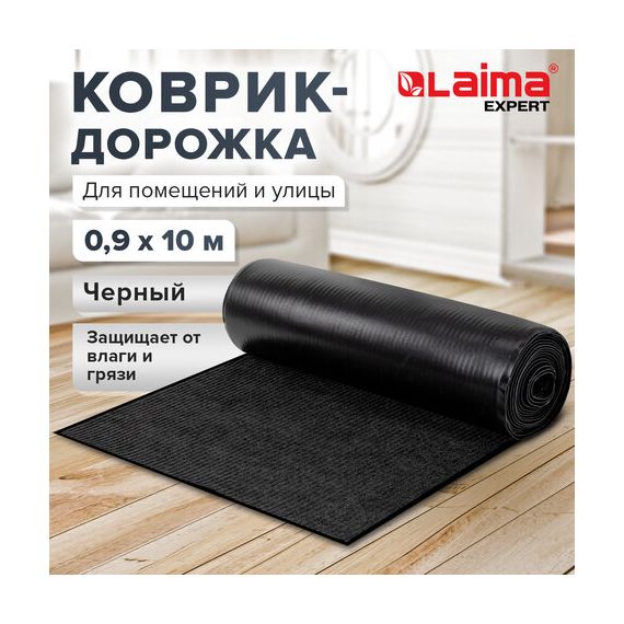 Коврик ДОРОЖКА 0,9х10 м, ЧЕРНЫЙ, влаго-грязезащита, 430 г/м2, ребристая, LAIMA EXPERT, 701042