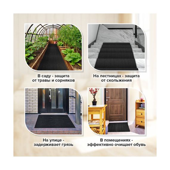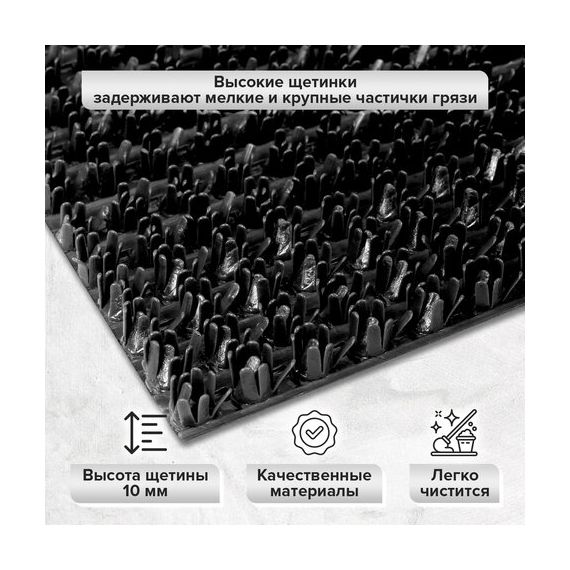 Коврик придверный дорожка LAIMA изготовлен из прочных и долговечных износостойких материалов. Структура коврика прекрасно защищает помещение от проникновения крупных фракций песка и снега. Обеспечивает эффективное очищение подошв обуви от различных видов загрязнений. Основа из спанбонда защищает напольное покрытие под ковром от пыли, песка и грязи. Подходит для использования как внутри помещений, так и снаружи (на улице).