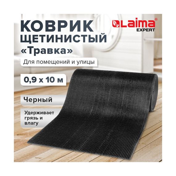 Коврик ДОРОЖКА 0,9х10 м, "ТРАВКА" ЧЕРНЫЙ пластиковый грязезащитный, щетина 10 мм, LAIMA EXPERT, 701070