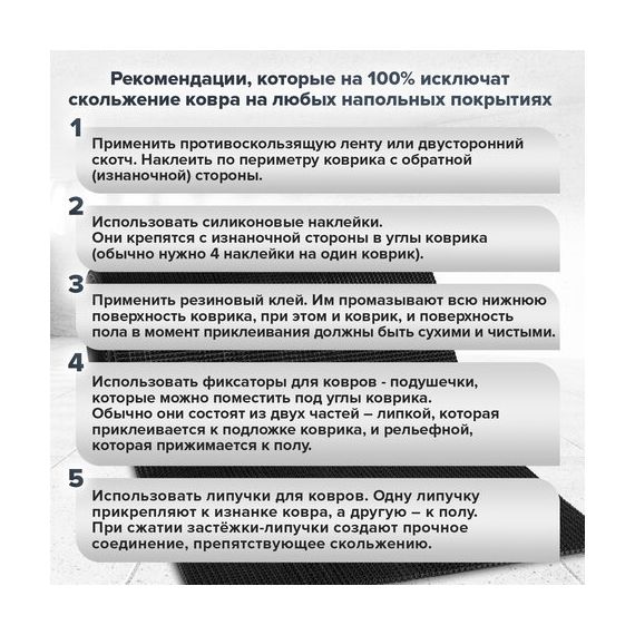 Рекомендуется фиксировать коврик на полу с помощью дюбелей и саморезов, особенно если есть стыки.