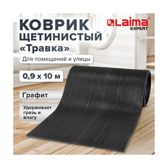 Коврик ДОРОЖКА 0,9х10 м, "ТРАВКА" ГРАФИТ пластиковый грязезащитный, щетина 10 мм, LAIMA EXPERT, 701069