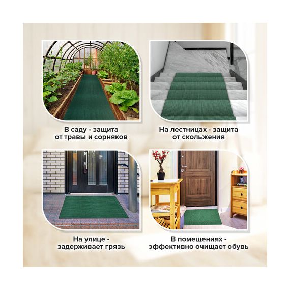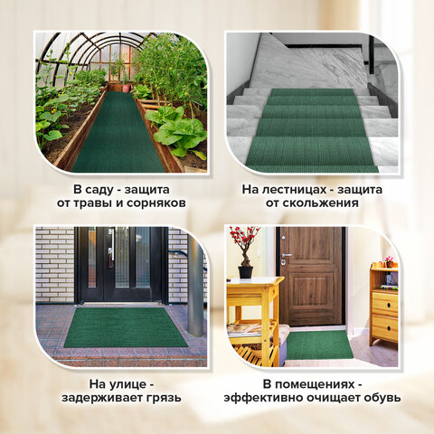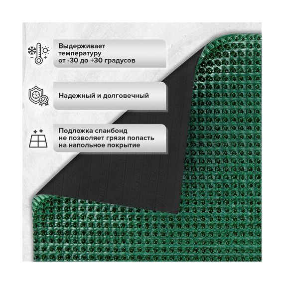 Коврик придверный дорожка LAIMA изготовлен из прочных и долговечных износостойких материалов. Структура коврика прекрасно защищает помещение от проникновения крупных фракций песка и снега. Обеспечивает эффективное очищение подошв обуви от различных видов загрязнений. Основа из спанбонда защищает напольное покрытие под ковром от пыли, песка и грязи. Подходит для использования как внутри помещений, так и снаружи (на улице).