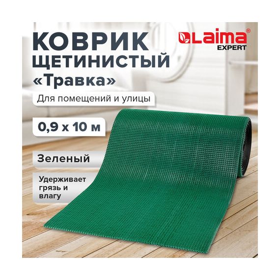 Коврик ДОРОЖКА 0,9х10 м, "ТРАВКА" ЗЕЛЕНЫЙ пластиковый грязезащитный, щетина 10 мм, LAIMA EXPERT, 701071