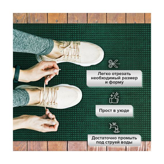 Не теряет своих свойств при низких температурах, не дубеет и не скользит. Легко чистится с помощью пылесоса или встряхивания коврика. Присохшая грязь смывается струей теплой воды.