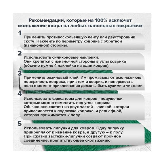 Рекомендуется фиксировать коврик на полу с помощью дюбелей и саморезов, особенно если есть стыки.