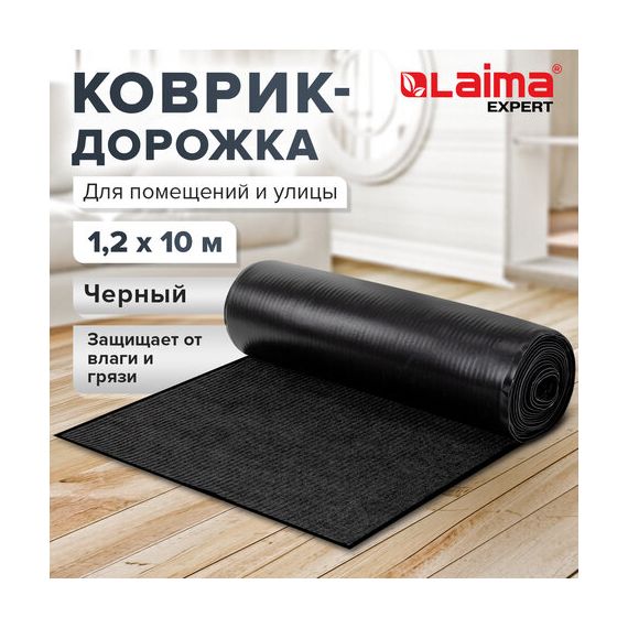 Коврик ДОРОЖКА 1,2х10 м, ЧЕРНЫЙ, влаго-грязезащита, 430 г/м2, ребристая, LAIMA EXPERT, 701045