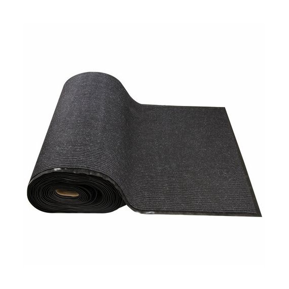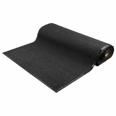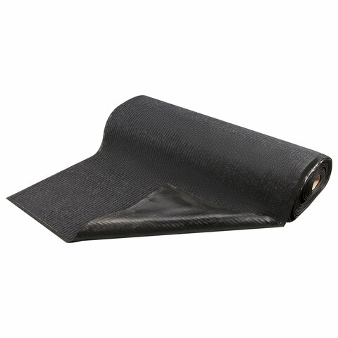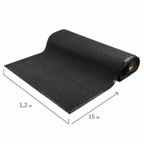 Нескользящая основа не дает влаге проникнуть на пол, предотвращает скольжение и возможные травмы при падении. Ворсовое покрытие с ребристой текстурой удерживает влагу и грязь. Размер - 120х1500 см. Толщина - 7 мм. Ворс изготовлен из 100% полиэстера. Коврик выполнен в черном цвете.