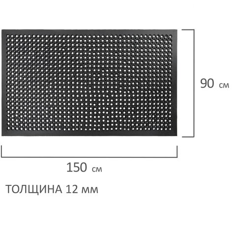 Коврик входной резиновый грязесборный перфорированный, 90х150 см, толщина 12 мм, LAIMA EXPERT, 607816