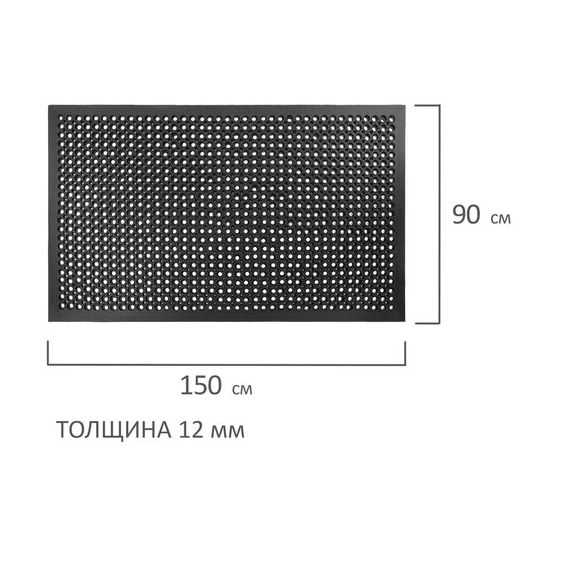 Толщина коврика равна 12 мм. Размер – 90х150 см. Цвет – черный.