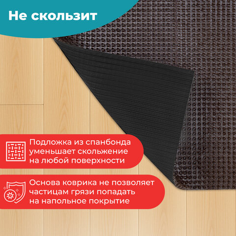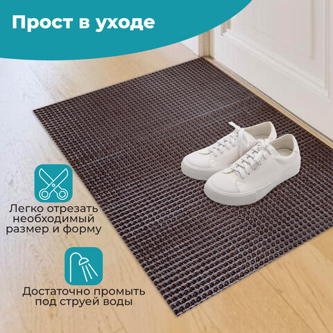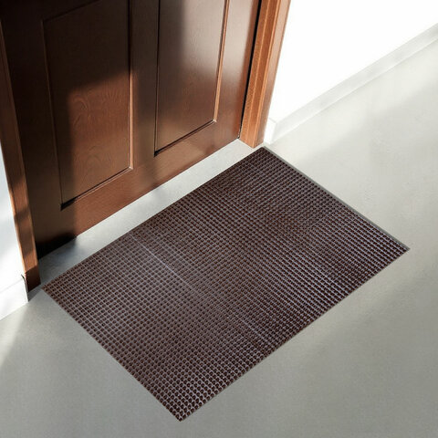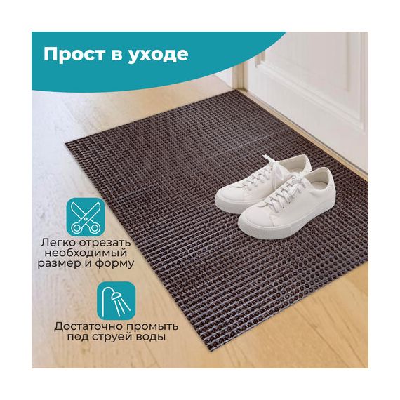 Не теряет своих свойств при низких температурах, не дубеет и не скользит. Легко чистится с помощью пылесоса или встряхивания коврика. Присохшая грязь смывается струей теплой воды.