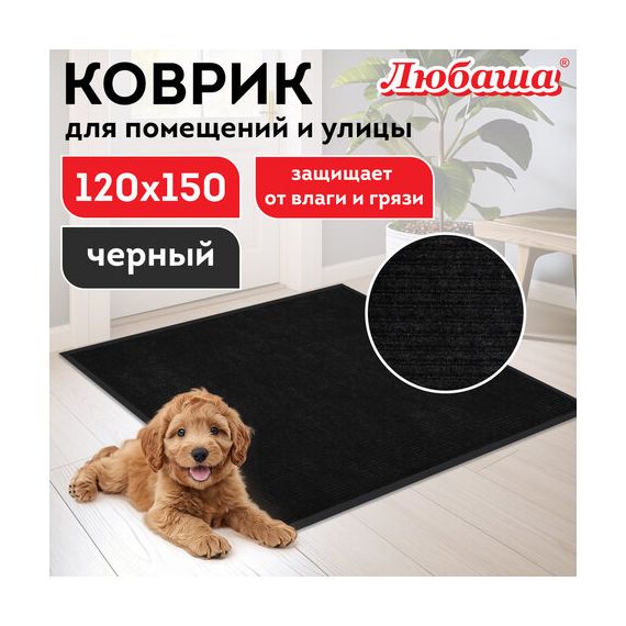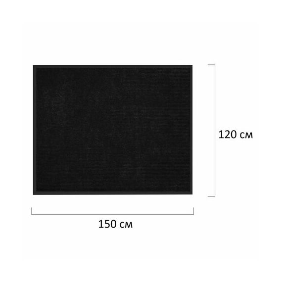 Коврик придверный 120х150 см, ЧЕРНЫЙ, влаго-грязезащитный, 430 г/м2, ребристый, ЛЮБАША СТАНДАРТ, 701040